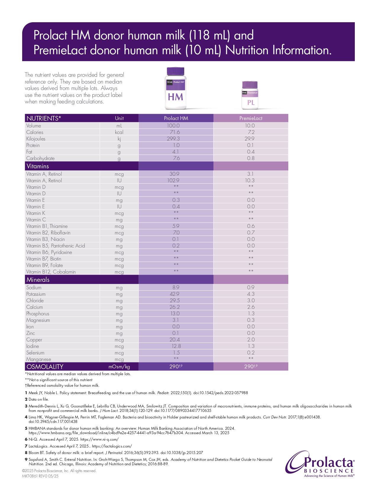 Produced in a pharmaceutical-grade facility, Prolact HM™ and PremieLact™ are processed with industry-leading safety and quality controls. Each batch is pasteurized, tested, and standardized for consistent nutrition — supporting NICU teams when MOM is not available.